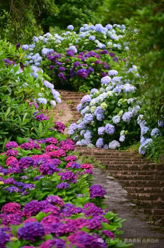 Hydrangeas are in full bloom. [Photo/WeChat account of Shuangshuang Guiyang, Pinzhi Baiyun]